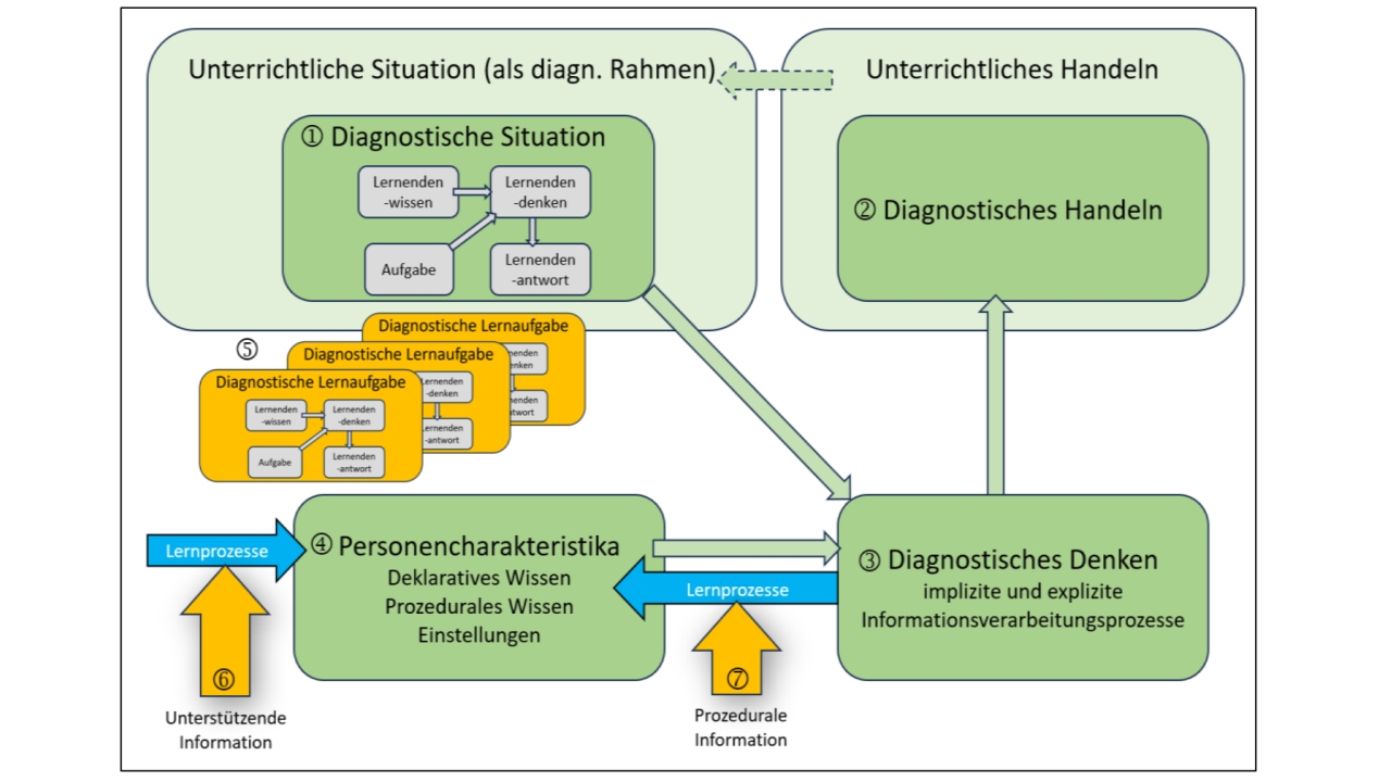 Ein Grund: Diagnostische Situationen im Unterricht sind hoch komplex. Lehrkräfte müssen unter Zeitdruck, oft parallel zu anderen Anforderungen, Informationen wahrnehmen, einordnen, mit eigenem Wissen verknüpfen und dann passende Entscheidungen treffen – etwa ein Feedback geben, Aufgaben anpassen oder eine Fördermaßnahme planen.